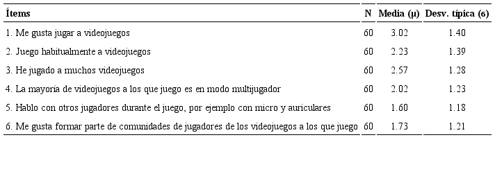En esta dimensión, agrupamos seis ítems que hacían alusión a las opiniones del alumnado en cuanto a sus gustos, dedicación, cantidad y modos de juego, sobre los videojuegos (Tabla 4).
