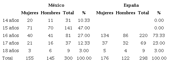 La población de estudio la conformaron 300 estudiantes del estado de Veracruz (México) y 298 de la ciudad de Santiago de Compostela (España) y alrededores (Tabla 1). La proporción de hombres y mujeres se ajustó a la distribución propia de las aulas durante la aplicación.