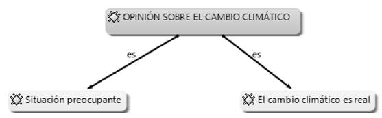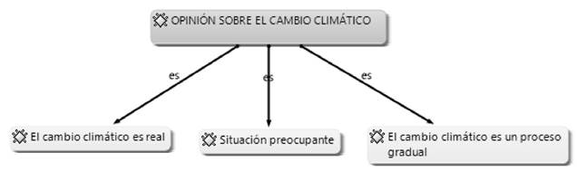 En la primera pregunta, ¿qué opinan acerca del cambio climático?, los estudiantes y profesores mencionaron que el cambio climático es real y es una situación preocupante; los profesores a la vez indicaron que es un proceso gradual (Figuras 1 y 2).
