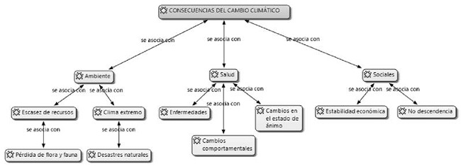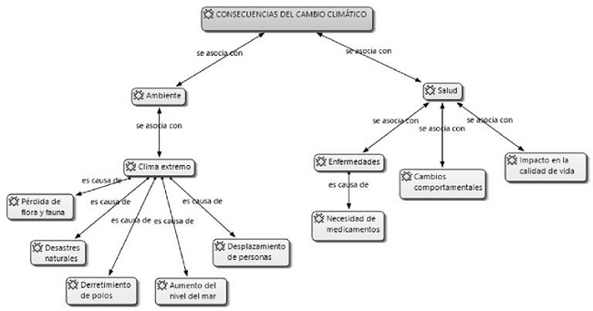 En cuanto a las consecuencias que trae consigo el cambio climático, los participantes destacaron, primeramente, efectos en el ambiente, como clima extremo, pérdida de flora y fauna, desastres naturales, derretimiento de polos, aumento del nivel del mar y desplazamiento de personas. Esto coincide con lo expuesto por varios autores en relación con las consecuencias del cambio climático, además de problemas de agua o cambio de uso de suelo, entre otros (Calixto Flores, 2018; Escoz et al., 2017; Fernández Ferrer, González García y Molina González, 2011; González-Gaudiano y Maldonado-González, 2014; Meira-Cartea y Arto-Blanco, 2014).