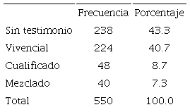 En la Tabla 3 el lector puede comprobar que, en la investigación citada que nos sirve de apoyo para exponer resultados, casi la mitad de las noticias dedicadas a relatar el acontecer de riesgos y catástrofes (43.3%) no incluyen ningún tipo de testimonio y, casi en la misma proporción (40.7%), se incorporan testimonios vivenciales, es decir, conexiones en las que los testigos presenciales o supervivientes tienen la oportunidad de comentar sus propias experiencias. Es casi insignificante (8.7%) la proporción de noticias que incorporan testimonios de personas expertas para abordar la información con una fuente mucho más cualificada. La ausencia de los testimonios cualificados es una de las claves de las noticias sobre el acontecer de riesgos y de catástrofes en tanto que la información periodística de catástrofes se suele abordar con datos de carácter catastrofista.