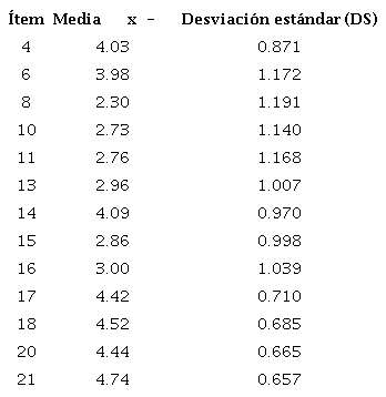 De igual modo, frente a estos valores, cabe señalar los resultados altamente positivos relacionados con los ítems 17 (M = 4.42; DS =0.71); 18 (M = 4.52; DS =0.68); 20 (M = 4.44; DS =0.66) y 21 (M = 4.74; DS =0.65), con unos resultados superiores siempre al valor 4 (≥4.42) y con una desviación menor al valor 0.8 (≤0.71). Estos datos revelan la alta coincidencia entre los participantes del estudio al reafirmar la relevancia de conocer las raíces educativas mexicanas para dar certidumbre a su futura labor pedagógica y para reforzar su identidad docente.
