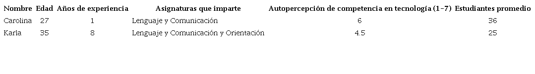 Las entrevistas a las profesoras, todas en 2020, complementan la información observada en las grabaciones de clases en tanto se observa un bajo manejo de tecnologías para el aprendizaje: