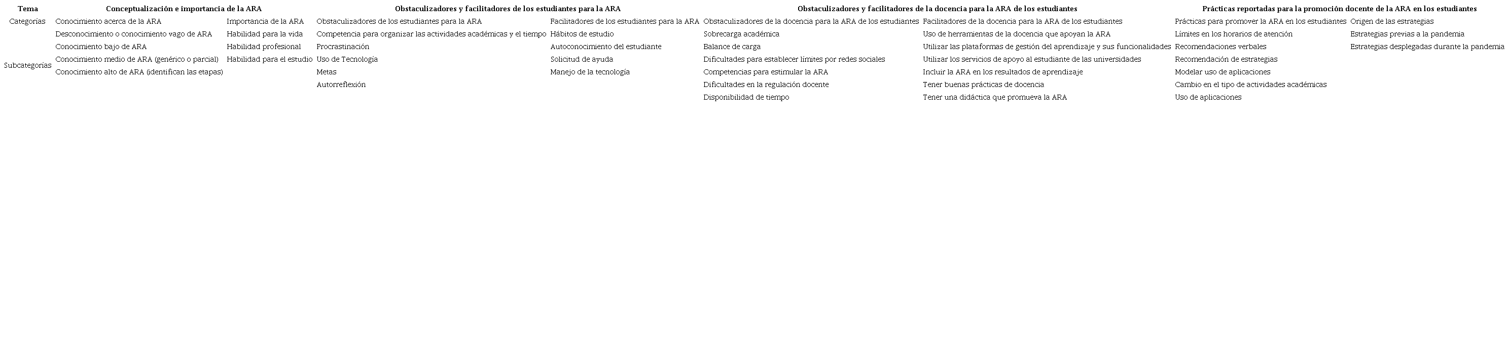 El conocimiento del constructo autorregulación del aprendizaje se da a distintos niveles, algunos docentes manejan definiciones técnicas completas, otros presentan confusiones conceptuales con otros constructos de similares características que tienen otros fines. En la Tabla 1 se presentan los cuatro temas principales identificados.