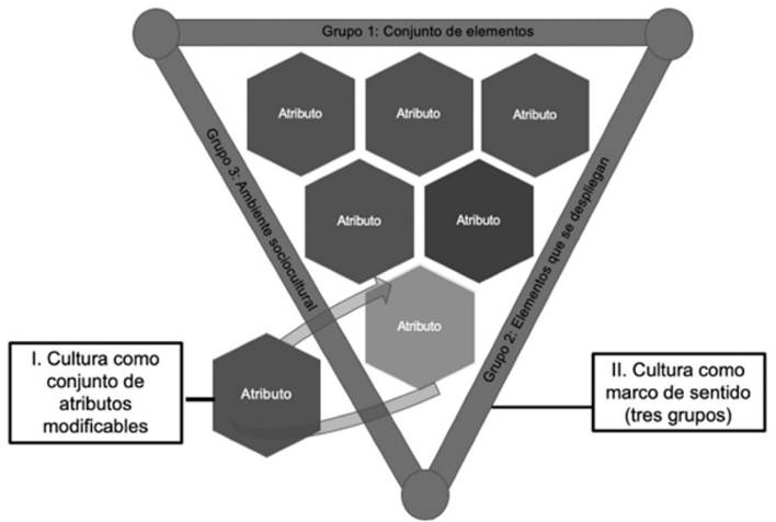 Un grupo mayor de artículos (N = 26) compone este segundo tipo de definición de cultura. El elemento distintivo de estos trabajos es que entienden cultura como un marco de sentido en el que se vive y actúa, primando un énfasis de la cultura como una condicionante de las formas de vivir y actuar de las personas. De esta forma, la idea de marco de sentido permite agrupar el conjunto de textos identificando dentro de ellos tres subgrupos con énfasis distintos.