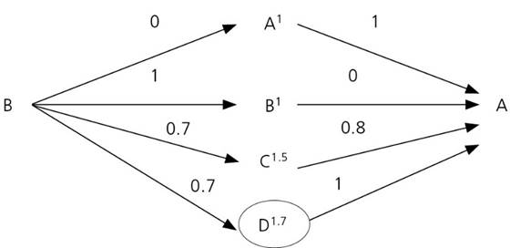 En este caso, referente a la planificación del capítulo, vemos que el efecto olvidado más relevante se encuentra entre el descriptor B y el A. Así, se descubre que el descriptor olvidado por los estudiantes es el D, como puede observarse en la Figura 2.