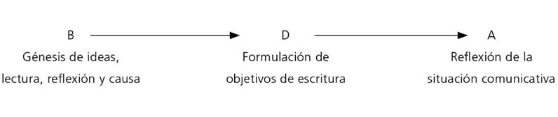 Hayes (1996) explica los procesos cognitivos de la forma siguiente: 1) la planificación-reflexión de la escritura se concibe como la representación mental de la tarea de composición en la que se incluyen todos los elementos del texto: contenido y forma estructural, sentido textual e intención comunicativa; comprende subprocesos cognitivos como: a) la génesis de contenidos (ideas) que incluye la búsqueda de información, b) la reflexión, organización y estructuración de contenidos, tareas que implican organizar las ideas para otorgar sentido y coherencia al texto y c) la formulación de objetivos como una forma de establecer control al acto de composición; 2) la producción-elaboración tiene la función de elaborar un producto escrito en atención a las representaciones internas construidas en el contexto de la tarea; proceso en el que recursivamente reflexiona, atiende a objetivos recursivos, organiza, elabora, integra, revisa y estructura las ideas; y 3) la revisión-interpretación es la operación en la que, a partir de estímulos lingüísticos, crea nuevas representaciones que reconstruyen el conocimiento y reorganizan el pensamiento. Todo ello pone en evidencia cómo al escribir, en esa acción epistémica, se reestructura el pensamiento, si el escritor se involucra en complejos procesos de elaboración cognitiva para construir, transformar y organizar el conocimiento.