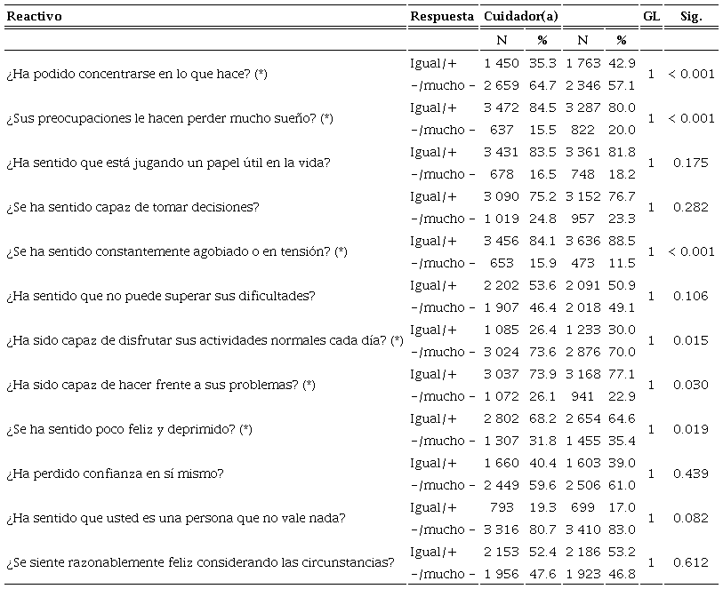 El detalle de las preguntas del GHQ-12 muestra que los sentimientos de agobio o tensión, dificultades para dormir, menor disfrute de las actividades normales e infelicidad o depresión fueron los síntomas más comunes y críticos sobre los cuales hay que prestar especial atención, particularmente entre las docentes y quienes ejercen como personas cuidadoras, pues ambos grupos autorreportan mayor sintomatología en cada uno de los reactivos. Considerando la evidencia encontrada, entre otras investigaciones, por Educar Chile y Circular HR (2020) y Fernández (2020) sobre el agobio laboral, Jakubowski y Sitko-Dominik (2021), Oducado et al. (2021) respecto del estrés o Krishnamoorthy et al. (2020), y Wang et al. (2020) en relación con la depresión, no sería extraño que esta sintomatología se tradujese eventualmente en trastornos mentales con un alto deterioro de la funcionalidad para un grupo importante de personas encuestadas, sobre todo en ausencia de medidas preventivas, de tratamiento y paliativas.
