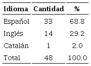 La organización de la información se hizo por tipo de fuente (Tabla 1), por idioma (Tabla 2) y por distribución en tiempo (Tabla 3).