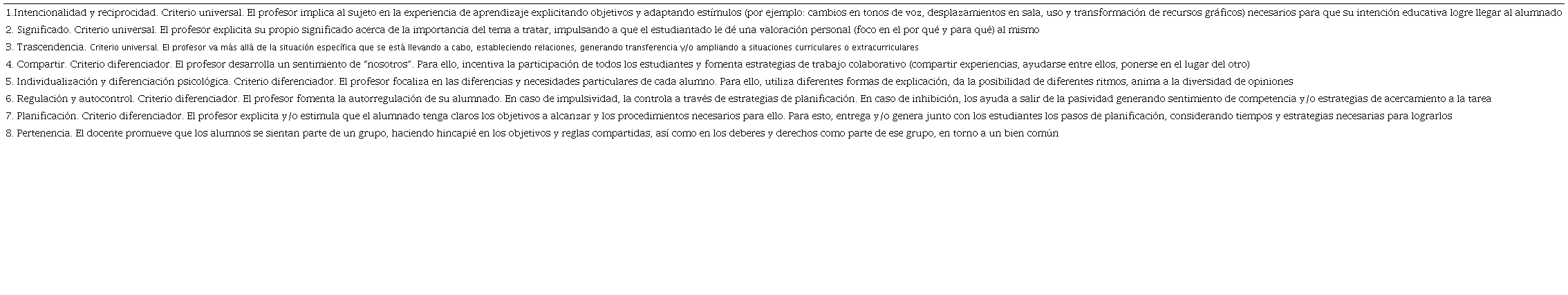El análisis de estos intercambios se centra en la identificación de los criterios de mediación de la teoría EAM. Esta teoría distingue entre criterios universales, qué son aplicables a toda relación educativa mediada, y diferenciadores, que se adaptan a las condiciones específicas del aprendiz y a contextos particulares (Tabla 3).