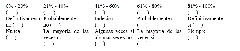 Estas variables fueron medidas cuantitativamente usando la escala tipo Likert, la cual se adaptó a los diferentes tipos de preguntas, por ello se utilizaron tres estilos de respuesta.