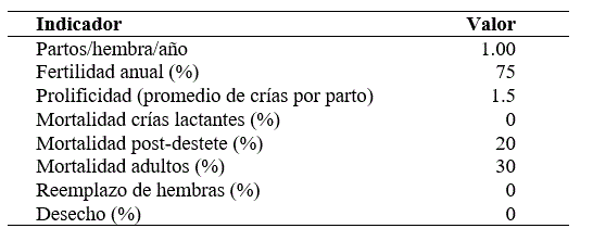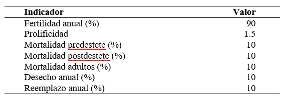 -El crecimiento del hato es por auto-reemplazo de hembras según los valores establecidos en cada escenario de evaluación.