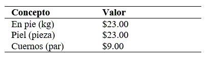 -Se asume un incremento del 5% anual en los costos y en los ingresos, con base en el valor del año previo a lo largo del desarrollo del modelo. El incremento anual se estableció con base en el promedio de inflación anual registrado entre el año 2006 y 2015. El ingreso fue estimado con base en el valor de venta de productos descritos en la Cuadro 4, y de acuerdo con el volumen de venta de hembras de deshecho, machos, cornamenta, piel y hembras de reemplazo excedente, en su caso. Solamente para el caso de machos aplica ingreso por cornamenta.