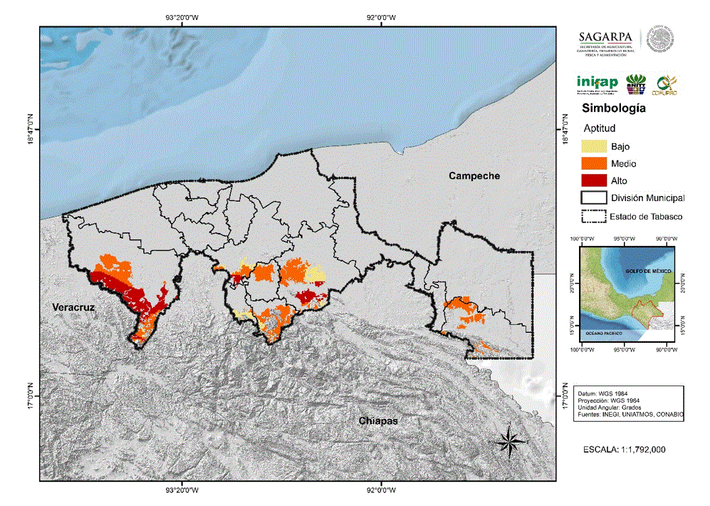 El estado de Tabasco presenta condiciones agroecológicas, de suelo, climáticas, de pendiente y altura sobre el nivel del mar que son favorables para el establecimiento de plantaciones comerciales de hule (H. brasilienses).