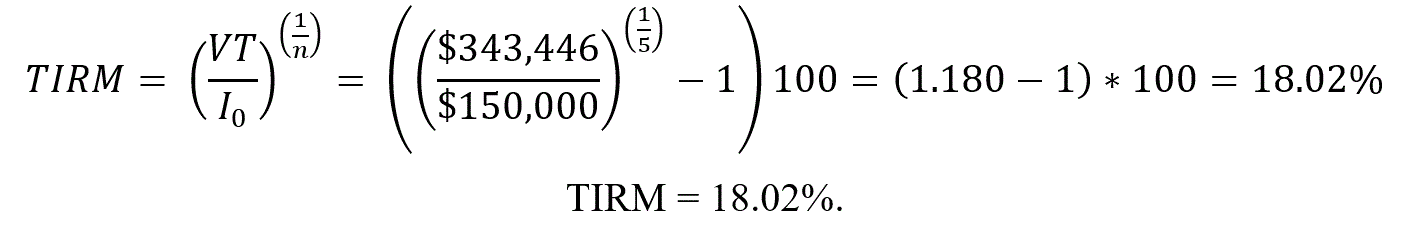 Por tanto, de forma manual, el valor de la TIRM se obtiene de la siguiente manera: