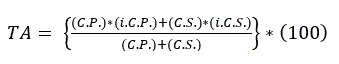En situaciones donde la inversión total inicial de un proyecto sea financiada con aportación de socios y endeudamiento vía crédito y/o préstamo; o cuando parte de la inversión inicial se financie mediante algún subsidio o donación a tasa cero. El procedimiento para estimar la TA puede realizarse con la siguiente fórmula: