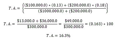TA = 0.0135 + 0.0035 = (0.1385) * 100TA = 13.85%