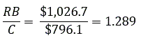 Al tomar el recíproco del RSI, restándolo de uno y multiplicándolo por cien, el valor obtenido, positivo o negativo, indicará hasta qué porcentaje podrían aumentar o disminuir los beneficios actualizados a fin de que se igualen al monto de inversión inicial actualizada.