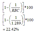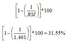 En forma porcentual, el RSI se obtiene restándole al valor inicial la unidad y multiplicándolo por cien. El resultado obtenido, indicará el porcentaje de utilidad o pérdida sobre la inversión inicial y, además, hasta que porcentaje podrían incrementarse estos costos a fin de que se igualen a los beneficios.