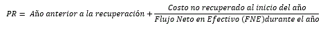 La expresión para estimar el periodo de recuperación de la inversión es: