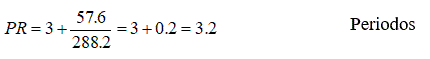 Si los periodos están dados en años, entonces, la inversión inicial se recupera en 3.2 años. Para convertir en meses, basta con multiplicar el 0.2 por 12, esto es: (0.2) (12) = 2.4 meses. Es decir, la inversión inicial se recuperará en tres años y 2.4 meses.