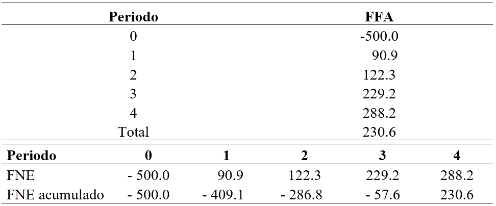 Al aplicar la Fórmula 3, se puede obtener fácilmente el VAN o VPN para el ejercicio hipotético planteado: