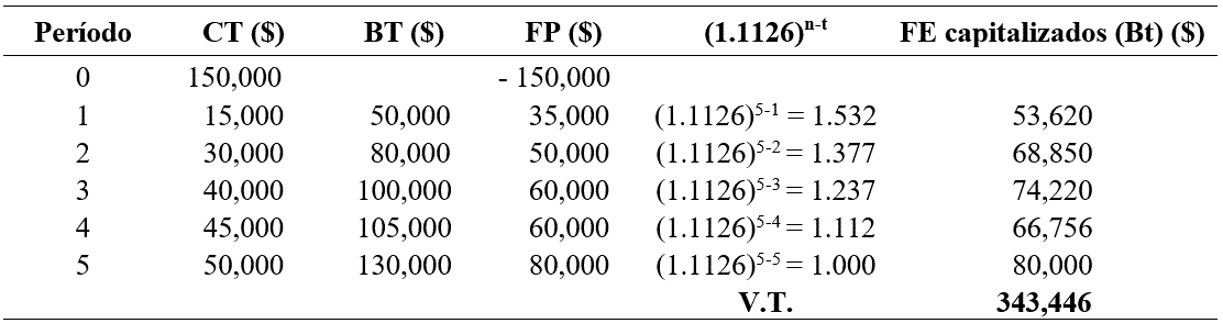 Nt= Monto de beneficios incrementales netos positivos, cifras en unidades monetarias