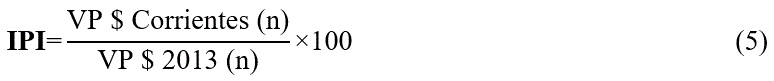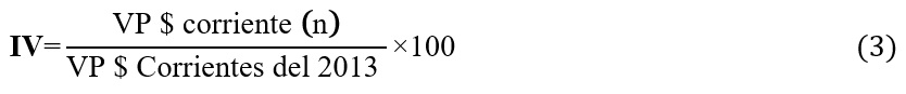 VP del año (n) $2013: Valor de la producción a precios del 2013 del año (n)