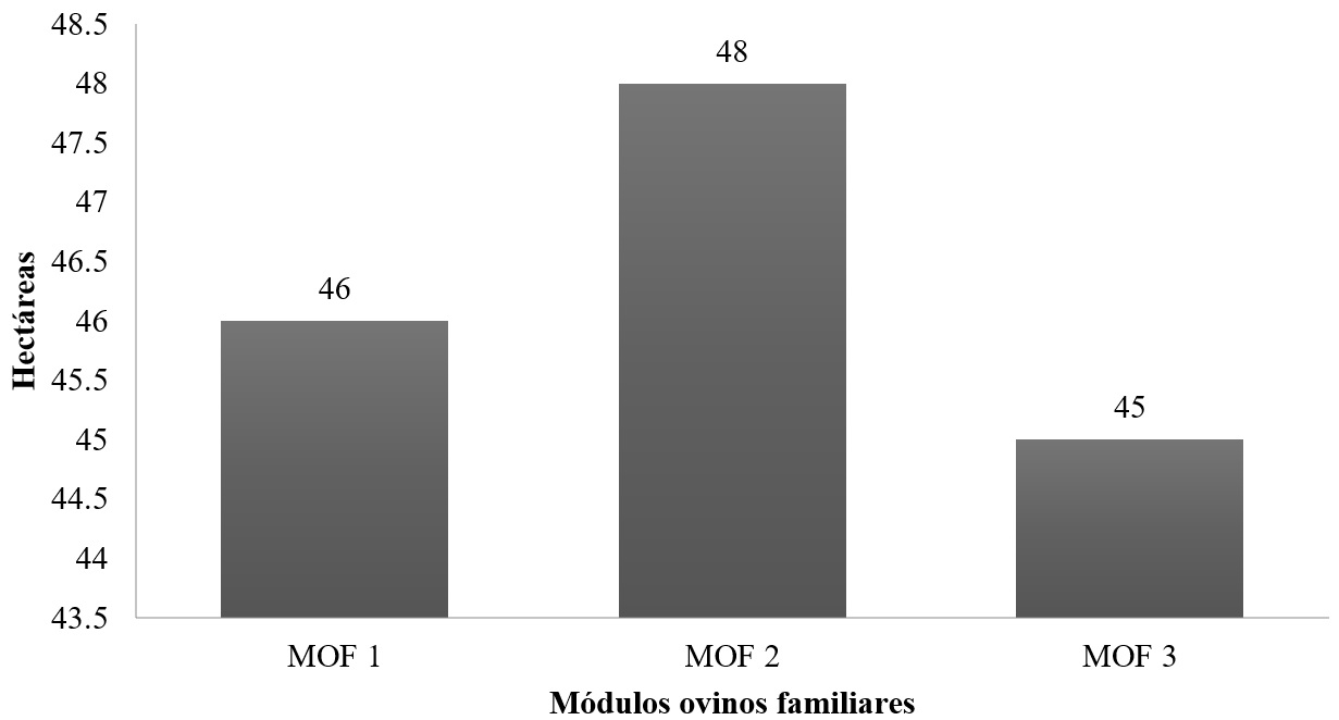 Con respecto a la tenencia de la tierra, se encontró que la pequeña propiedad es importante para los productores de ovinos, ya que esta les permite sustentar y fortalecer su manejo y espacio en el pastoreo cerril; sin embargo, cuentan además con tenencia de la tierra de tipo ejidal e inclusive (pequeña propiedad y ejidal) para la crianza de sus ovinos, en la Figura (1), se observa la cantidad de hectáreas por productor en los MOF encuestados en el estudio.