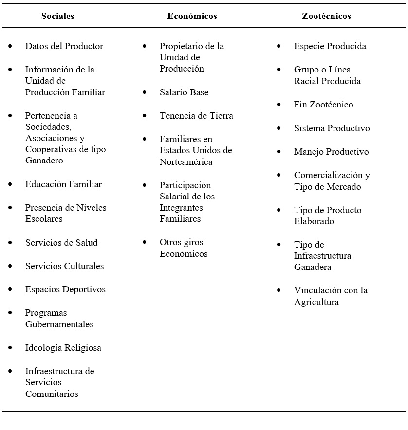 Con respecto a los MOF, el número de ovinos promedio destinados al estudio por cada módulo fue de 42 ovinos (hembra), y los módulos se seleccionaron al azar de acuerdo a su distancia cercana al municipio; además, se realizaron cuatro entrevistas con los productores de ovinos considerados en el estudio en el salón de cabildo del municipio de Piaxtla, para dar conocimiento y difusión del trabajo a realizarse en el área estudio de acuerdo al Esquema (1). Se utilizó un cuestionario de 80 preguntas tipo encuesta en forma de entrevista, para ser aplicados a los tres productores de los (MOF) módulos ovinos de tipo familiar en ambiente silvopastoril. Los datos fueron obtenidos de 12 visitas en el área de estudio. Con la información obtenida se diseñó una base de datos en una hoja Excel (Microsoft Corporation). La encuesta abarco aspectos sociales, económicos y zootécnicos, basados en la propuesta realizada por Raj, (1980). Para el análisis de datos de los principales aspectos sociales, económicos y zootécnicos se utilizó estadística descriptiva y obtener frecuencias relativas y absolutas (Cuadro1), apoyándose con el paquete estadístico SPSS 10.0 para Windows.