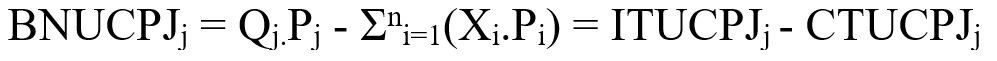 Donde X. es la cantidad del componente i, P. es el precio del componente i. Por otro lado, el Ingreso Total de la UCPJ j (ITUCPJ.) se determinó como: