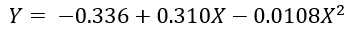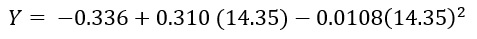 Y= -0.336 + 0.310 (11.10) - 0.0108(11.10)2 = -0.336 + 3.44 - 1.33 = 1.77 kg de peso, promedio de los conejos, correspondiente al NOE.