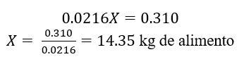 Al despejar X, se conoce entonces el valor del insumo variable, la cantidad de alimento total, promedio, que consumieron los conejos durante el periodo que duró el experimento, equivalente el NOT, esto es: