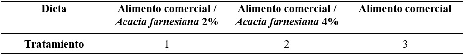 Estos conejos se confinaron en jaulas individuales con comedero y bebedero, durante 30 días (del 19 de octubre de 2019 al 7 de noviembre de 2019) distribuidos mediante el diseño estadístico completamente al azar, en 10 bloques, tres tratamientos, con tres repeticiones por bloque. Durante el periodo de alimentación, se consideró un periodo de ambientación de tres días (d) previo al experimento.