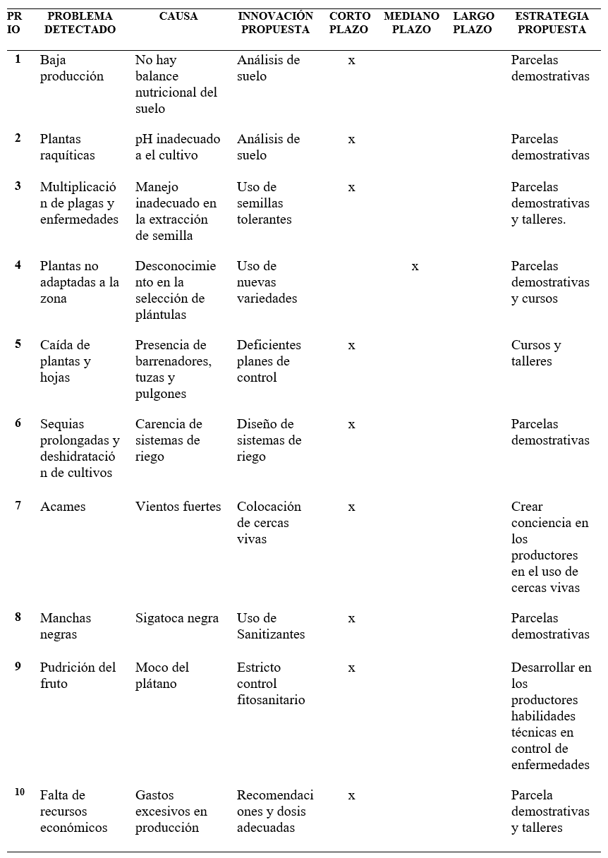 A continuación, en el Cuadro 4 y 5, se enlistan los de mayor prioridad que el Instituto Tecnológico Superior de Cosamaloapan propone para colaborar en la solución para los cultivos de caña y plátano