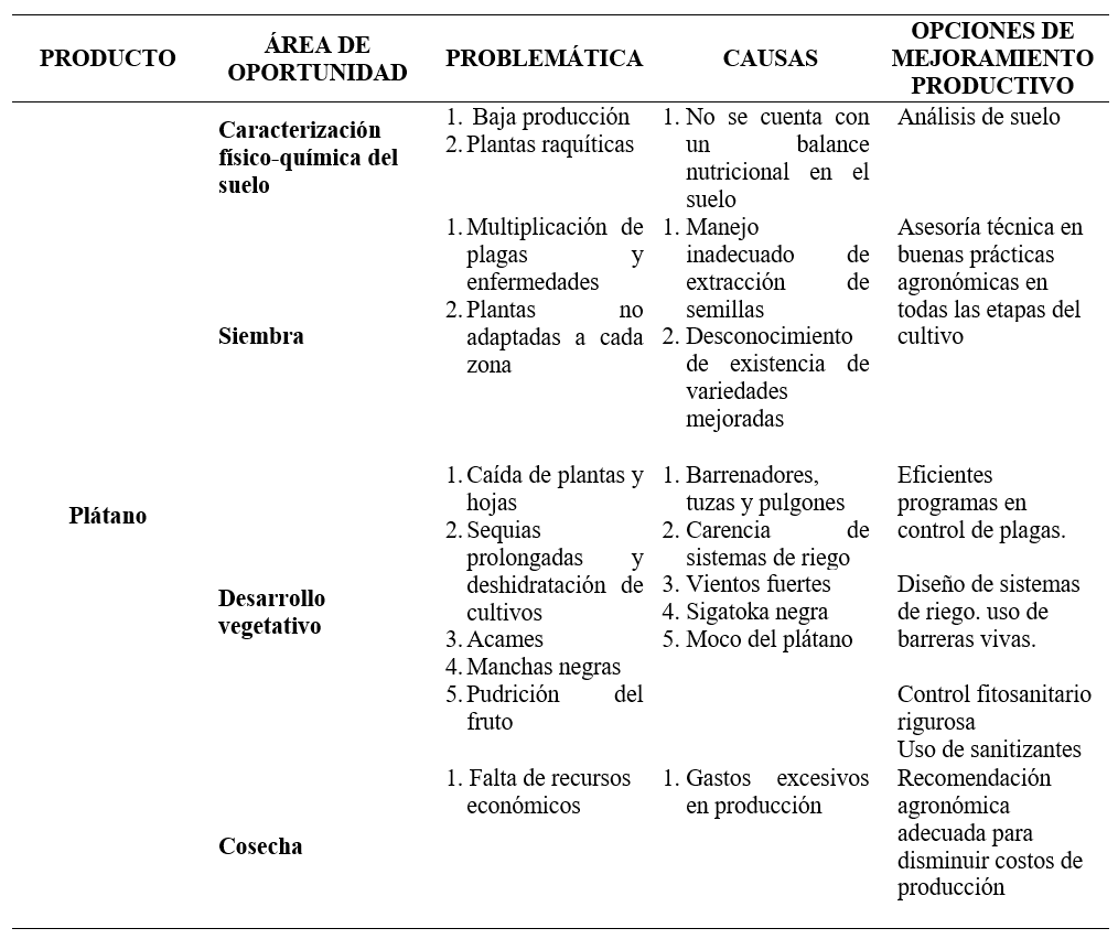Abstract: According to the classification of economic activities in Mexico, agriculture is a primary activity, as are livestock, forestry, mining and fishing. The Family Production Units (UPF) in Mexico are considered as actors that convert a threat into a food advantage. Therefore, the objective of the study was to carry out a technical-productive diagnosis of the family production units of sugar cane and banana crops, located in the Papaloapan region, in the state of Veracruz. It also describes activities, technologies and supplies used by producers in their crops, as well as basic information for detecting technical problems that affect production. It concludes with the possible innovations proposed for the sugar cane and banana product system, in order to increase its productivity and achieve a greater number of markets.