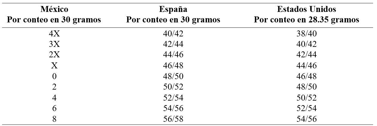La calidad del garbanzo se clasifica de acuerdo con el tamaño del grano en donde el calibre 0 se refiere a un peso de 30 gramos y se tienen de 48 a 50 granos; entre más grande es el tamaño del grano el calibre es mayor combinado con la forma y rugosidad y el color y tono de la piel de este (Cuadro 1).