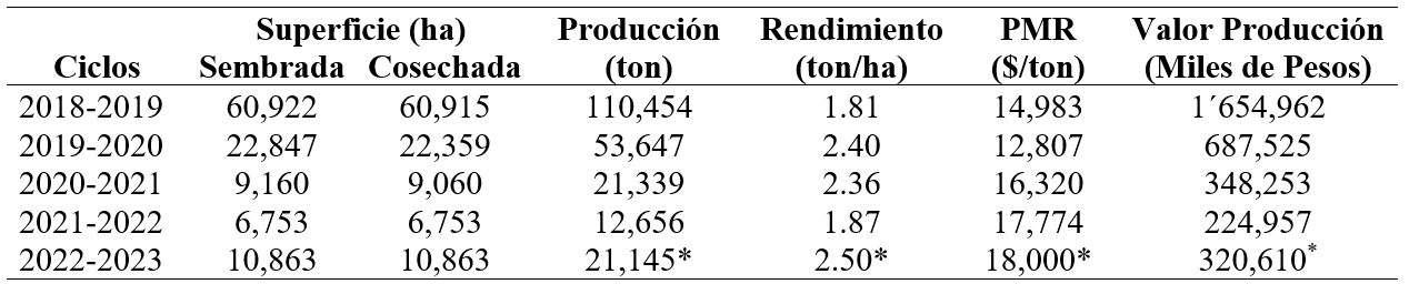 Anuario Estadístico de la Producción Agrícola. 2022 http://www.siap.gob.mx/cierreagricola-por-estado/.