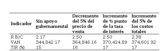 Para el análisis de sensibilidad, las cuatro opciones que se consideraron tuvieron los indicadores financieros de rentabilidad que se muestran en el Cuadro 3.
