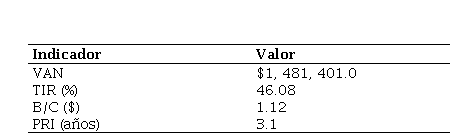 Esta cantidad indica que con la puesta en marcha del proyecto se obtendrá una utilidad neta de 1, 481, 401.0 pesos, considerando una tasa de actualización del 10% y de acuerdo con el criterio formal de selección y evaluación a través de este indicador, el proyecto se determina como muy rentable.