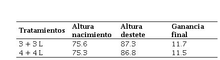 Con relación a los resultados para ganancia de peso (Cuadro 2), se observa 5% más de ganancia respectivamente para el tratamiento T2. Para que las vaquillas Holstein lleguen al primer servicio entre 13 y 15 meses de edad, debe alcanzarse una ganancia diaria de peso mínima de 810 g por día, desde el nacimiento hasta el servicio (Schingoethe y García, 2004).