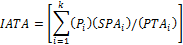 Dónde: IATA=Índice de Apropiación de Tecnología Agrícola, K=número de componentes tecnológicos del paquete tecnológico, Pi = ponderación otorgada al i-ésimo componente de recomendación, donde , SPAi =Sistema Productivo Agrícola para el i-ésimo componente de recomendación; i= 1, 2…..k., PTAi= Paquete Tecnológico Agrícola para el i-ésimo componente de recomendación; i= 1, 2…..k. (SPAi / PTAi) = proporción de la tecnología empleada donde: 0= indica que no hay apropiación de tecnología, 1=uso adecuado de la tecnología y 0.5=uso inadecuado del componente tecnológico.
