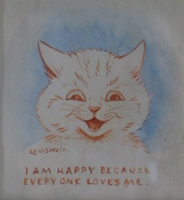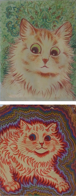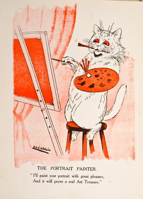 Louis Wain (1860-1939) fue uno de los ilustradores más reconocidos de la época victoriana en Inglaterra; destaca entre su obra la ilustración de gatos antropomorfizados. Hoy en día su obra sigue siendo objeto de interés, no sólo por su afición por estos animales, sino porque se le diagnosticó con esquizofrenia, lo que para algunos se ve reflejada en sus pinturas, siendo las últimas de ellas prueba de su deterioro por esta afección psicótica.