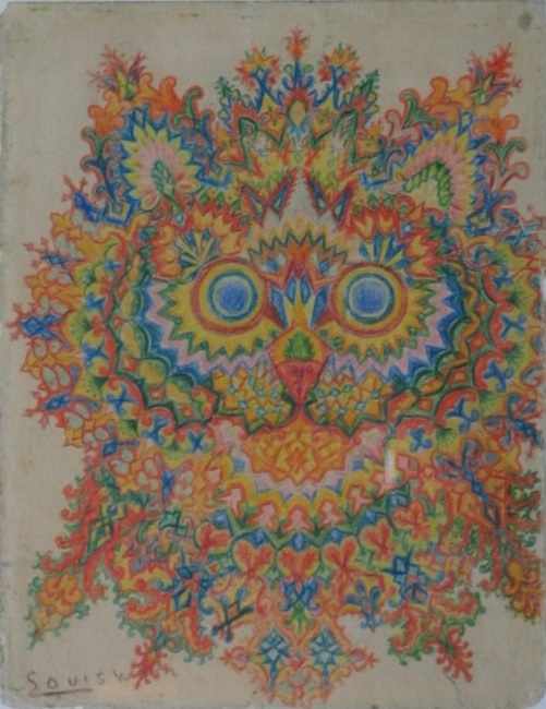 Si bien Wain sí contaba con formación académica, sus dibujos comenzaron a mostrar la progresión de su enfermedad, característico del art brut, pues una vez liberado de las convenciones normales, terminó siendo extrañamente revolucionario. Algunos creen que su obra se adelantó a lo que después se conoció como arte fractal o psicodélico, cualidades de su dibujo que para nosotros evidencian la desintegración de su imagen, la percepción de un mundo desorganizado, no articulado.