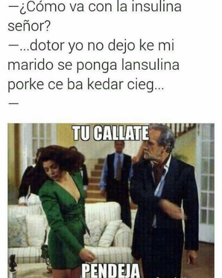 Este meme reúne una serie de elementos que caracterizan el ‘ser paciente’ desde la perspectiva médica y que, como veremos en las siguientes páginas, reaparecen en varias narrativas grupales que constituyen su identidad. La historia ilustrada en este meme retrata a los pacientes como sujetos que: 1) carecen de educación (nótese la manera cómo está escrito el diálogo de la paciente en el meme); 2) tienen ideas irracionales (la insulina no produce ceguera, sino que ésta es una complicación de la diabetes); 3) toman decisiones irresponsables (no utilizar la insulina a pesar de que el médico la ha prescrito), y 4) no son competentes para hacerse cargo de su salud (pues sin el tratamiento a base de insulina, la salud del paciente diabético irá deteriorándose cada vez más). Otras narrativas grupales sobre ‘ser paciente’ recopiladas durante mi trabajo etnográfico reproducen las mismas características, como se aprecia con los siguientes ejemplos: