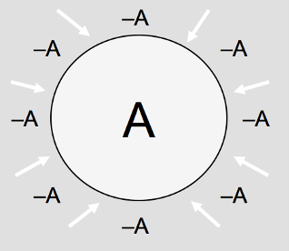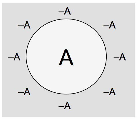 Como explica Estela Serret, en los sistemas de significación binaria comprendemos el significado de algo en la medida en que lo distinguimos de “aquello que lo niega, que encarna sus límites y su alteridad”.28 Los referentes de significación binaria están compuestos por dos elementos que existen relacionalmente, es decir, que no podrían existir uno sin el otro. Sin embargo, la relación entre ambos es asimétrica, pues uno de ellos se refiere a una categoría central A que se define a partir de su negación, la categoría límite -A. Lo que definimos con estas parejas simbólicas es la categoría central A. En oposición a ella, la categoría límite sólo nos sirve para definir A, para trazar los límites de A, para conceptualizar A. Pero la categoría límite no tiene por sí misma un significado afirmativo; su significado más allá de -A parece ininteligible. -A simplemente es lo que queda fuera de A; es la alteridad radical. La Figura 4 representa esquemáticamente la relación entre una catergoría central y su categoría límite.