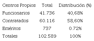 De dichos contratos laborales, los permanentes significan casi un 25%, siendo un 75 86% no permanentes. La distribución de dichos contratados es: