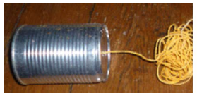 Los alumnos interactuaron con una gran diversidad de elementos: amplificadores, parlantes diversos, un diapasón, tapones para oídos, etc. Se emplearon vasitos de metal unidos con una línea de piolín de algodón, como se muestra en la Figura 6(a), para que los alumnos, mediante el tacto, perciban la vibración de la cuerda al hablar dentro de uno de los vasos. Como analogía eléctrica de este evento mecánico se dispusieron dos parlantes unidos mediante un cable eléctrico para explicar el desplazamiento de una onda electromagnética al hablar por uno de los parlantes y escuchar por el otro, como se ve en la Figura 6 (b).