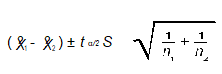 t/2 es el valor crítico correspondiente al grado de confianza 1-α de la distribución t de Student con n1+ n2-2 grados de libertad y