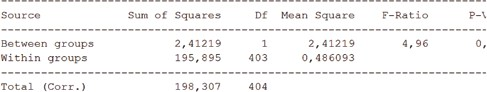 Para los dos niveles se espera determinar si existen diferencias significativas en los promedios. Se emplea para ello una prueba de hipótesis para la diferencia de medias. En este sentido, si puede suponerse que las varianzas de ambas poblaciones son iguales, el intervalo de confianza para la diferencia de medias poblacionales está centrado en la diferencia de las medias muestrales, siendo sus límites superior e inferior: